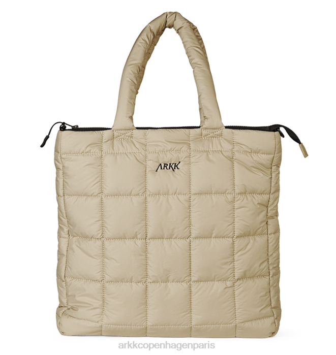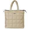 sac shopper en nylon doux avec détails matelassés carrés. espace sécurisé à l’intérieur pour les petits objets comme votre portefeuille ou vos clés et ouverture à glissière en haut. le sac est livré avec une bandoulière réglable amovible